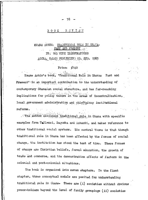 Book review : Kwame Arhin. Traditional rule in Ghana