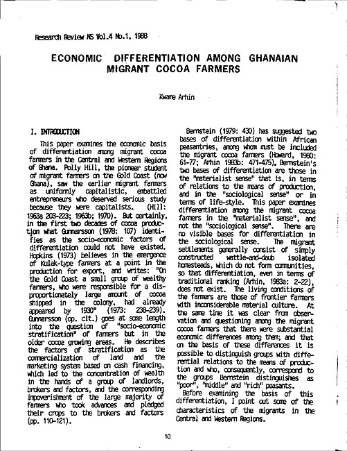 Economic differentiation among Ghanaian migrant cocoa farmers