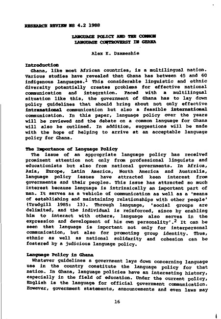 Language policy and the common language controversy in Ghana