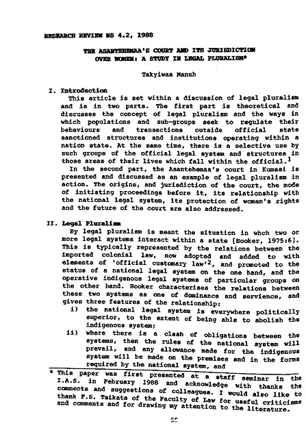 The Asantehemaa's court and its jurisdiction over women : a study in legal pluralism