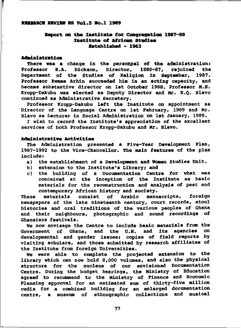 Report on the Institute for Congregation 1987-88 Institute of African Studies established - 1963