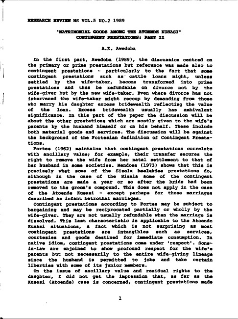 "Matrimonial good among the Atoende Kusasi" contingent presentations : Part II