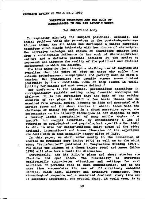 Narrative technique and the role of commentators in Ama Ata Aidoo's works