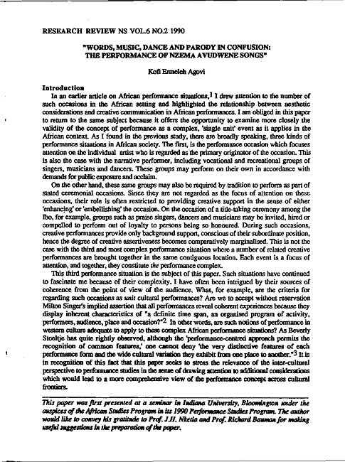 "Words, music, dance and parody in confusion : the performance of Nzema Avudwene songs"