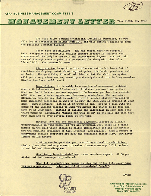 ASPA Business Management Committee's management letter. Vol. 7 (1982 August)