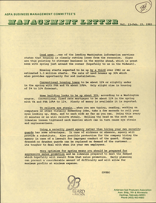 ASPA Business Management Committee's management letter. Vol. 13 (1983 February)