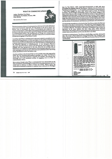 Review of: Marthinus van Schoor. What is communication? Pretoria: Van Schaik, 1986