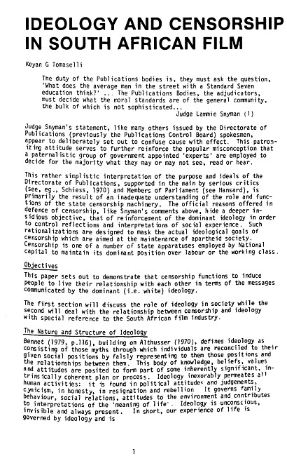 Ideology and censorship in South African film