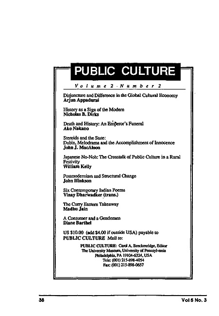 Advertisement for journal "Public culture"
