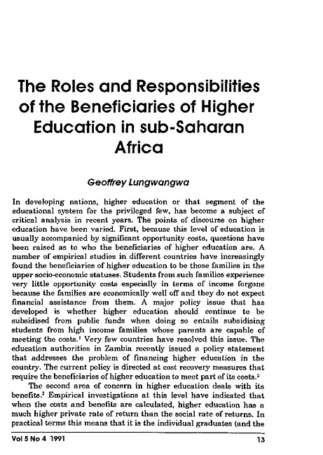 The roles and responsibilities of the beneficiaries of higher education in sub-Saharan Africa