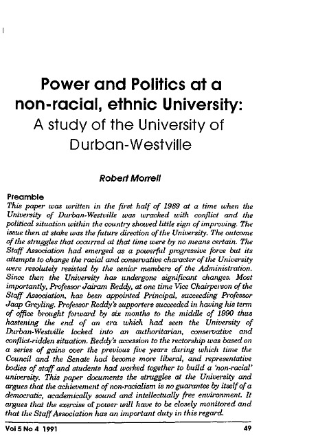 Power and politics at a non-racial, ethnic university : a study of the University of Durban-Westville
