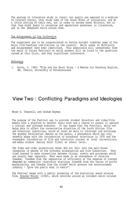 Conference report : First National Student Film and Video Festival|nView 2|pConflicting paradigms and ideologies