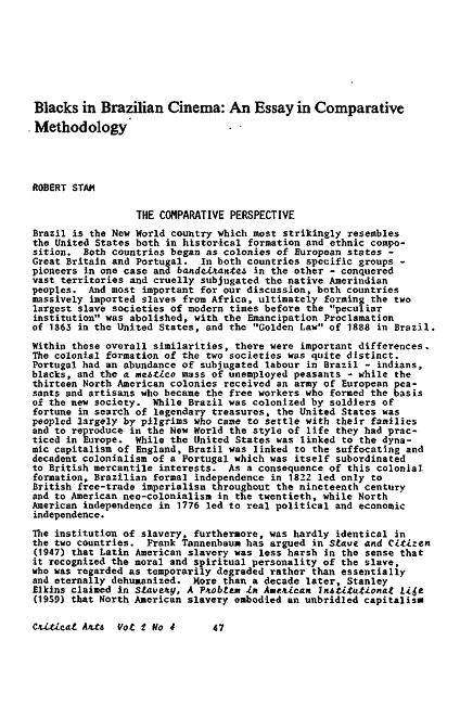 Blacks in Brazilian cinema : an essay in comparative methodology