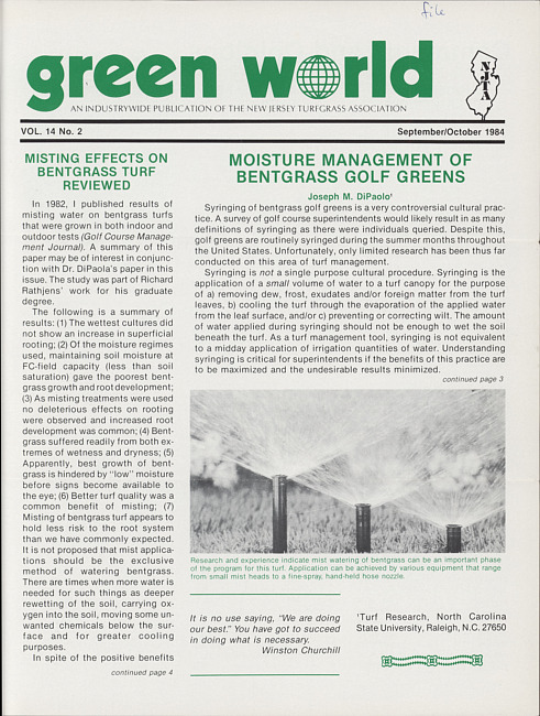 Green world. Vol. 14 no. 2 (1984 September/October)