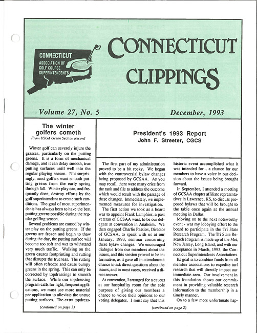 Connecticut clippings. Vol. 26 no. 5 (1993 December)