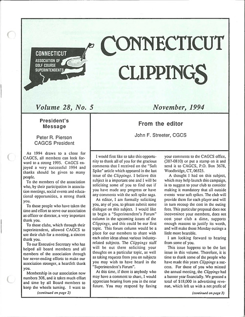 Connecticut clippings. Vol. 27 no. 5 (1994 November)