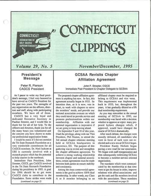 Connecticut clippings. Vol. 28 no. 5 (1995 November/December)