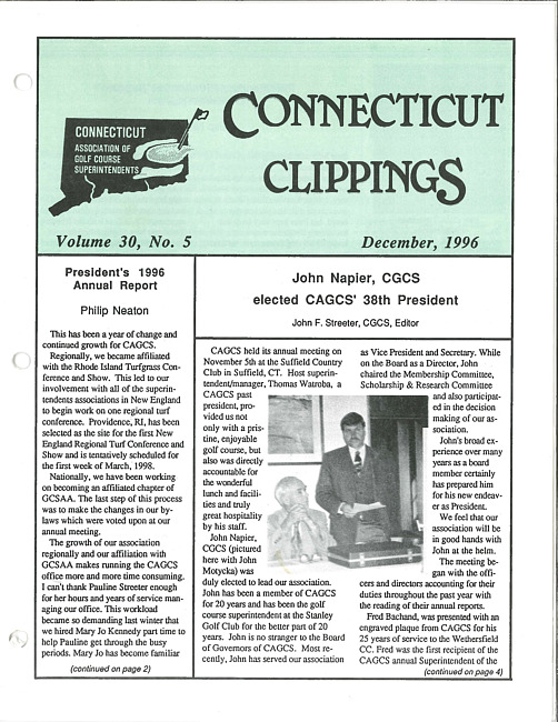 Connecticut clippings. Vol. 29 no. 5 (1996 December)