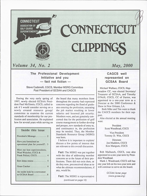 Connecticut clippings. Vol. 34 no. 2 (2000 May)