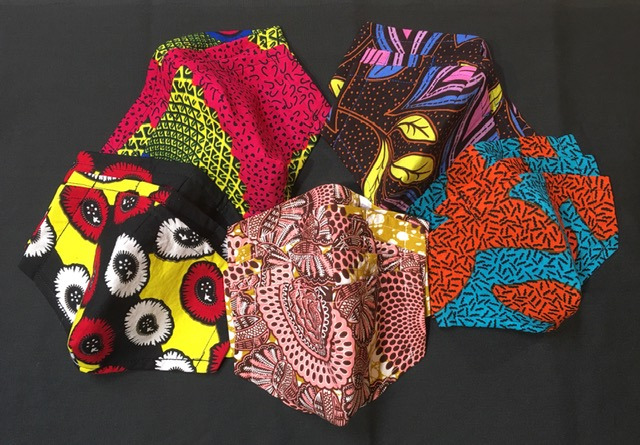 Reusable masks made with 100% cotton prints, each with different combinations of cheerful and fun designs.