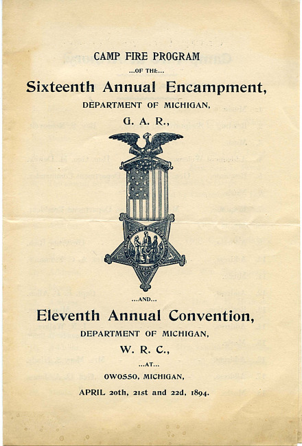 Encampment programme and souvenir of Chicago for the 34th Annual Encampment of the Grand Army of the Republic in Chicago, Illinois. The encampment was held August 26 to September 1, 1900.