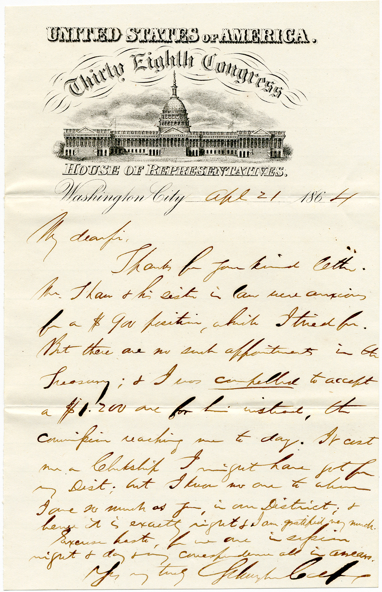 Colfax describes the process by which he secured a job for Mr. Shaw.