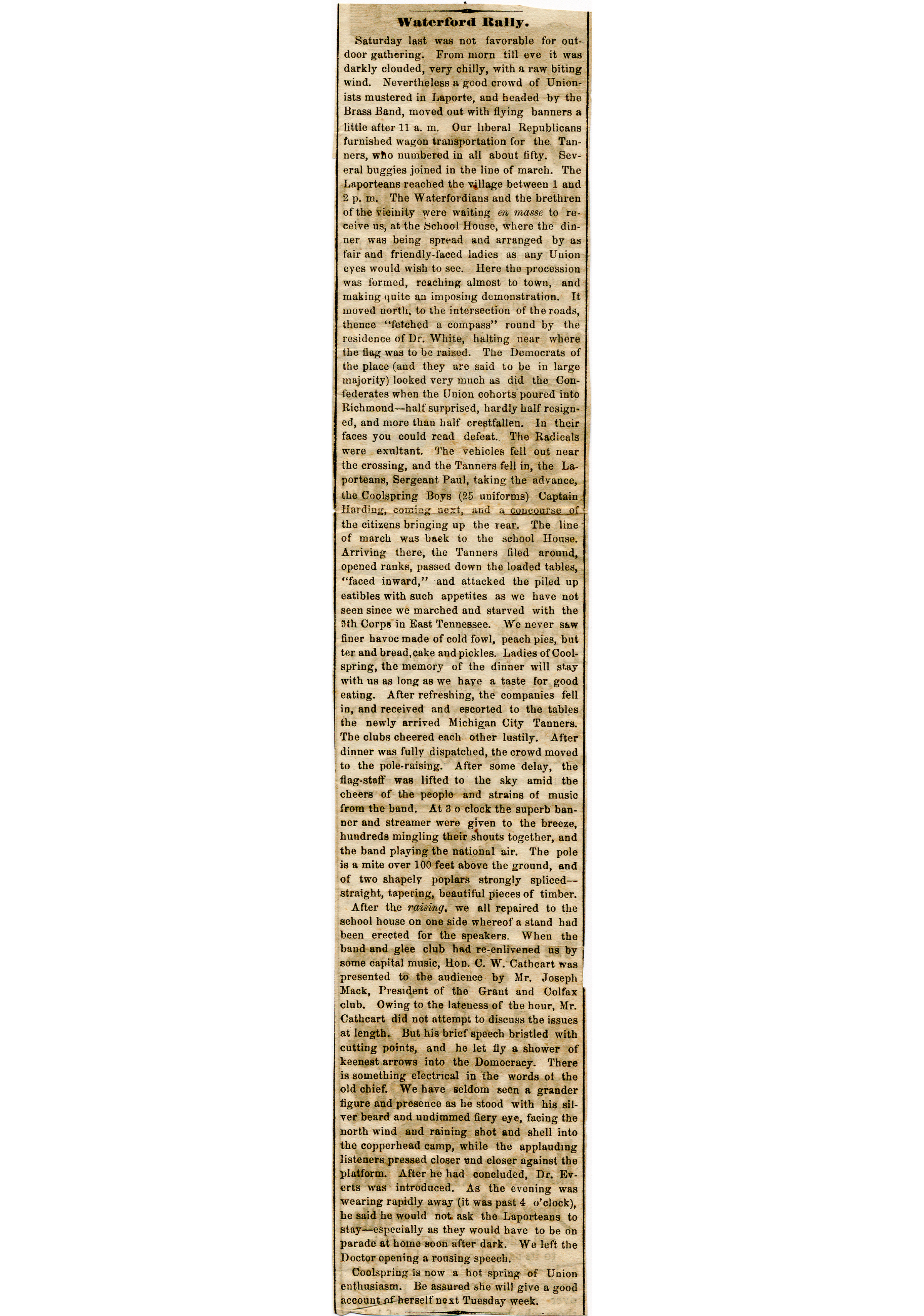 Cathcart Newspaper Clippings, 1865-68 : "Waterford Rally," October 3, 1868