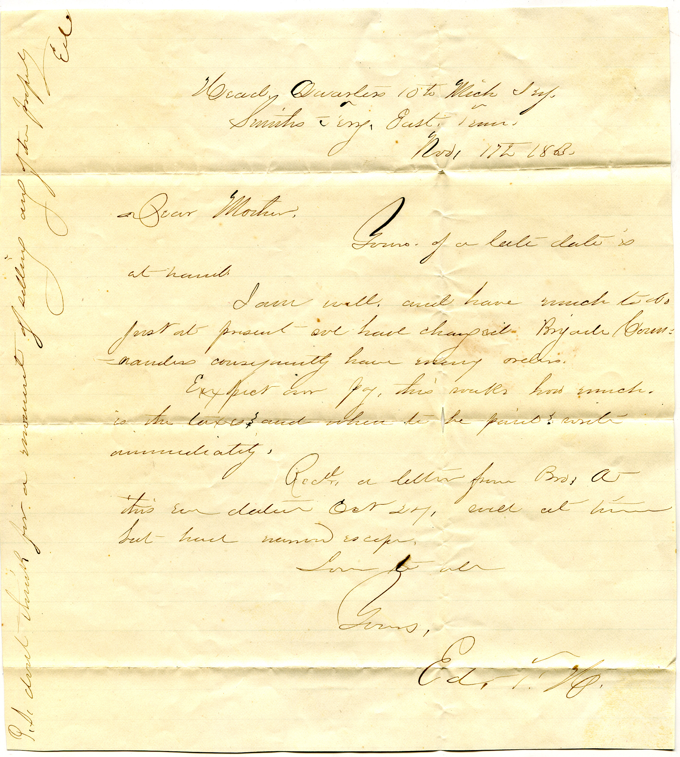 Edwin Holmes Letter : November 17 1863