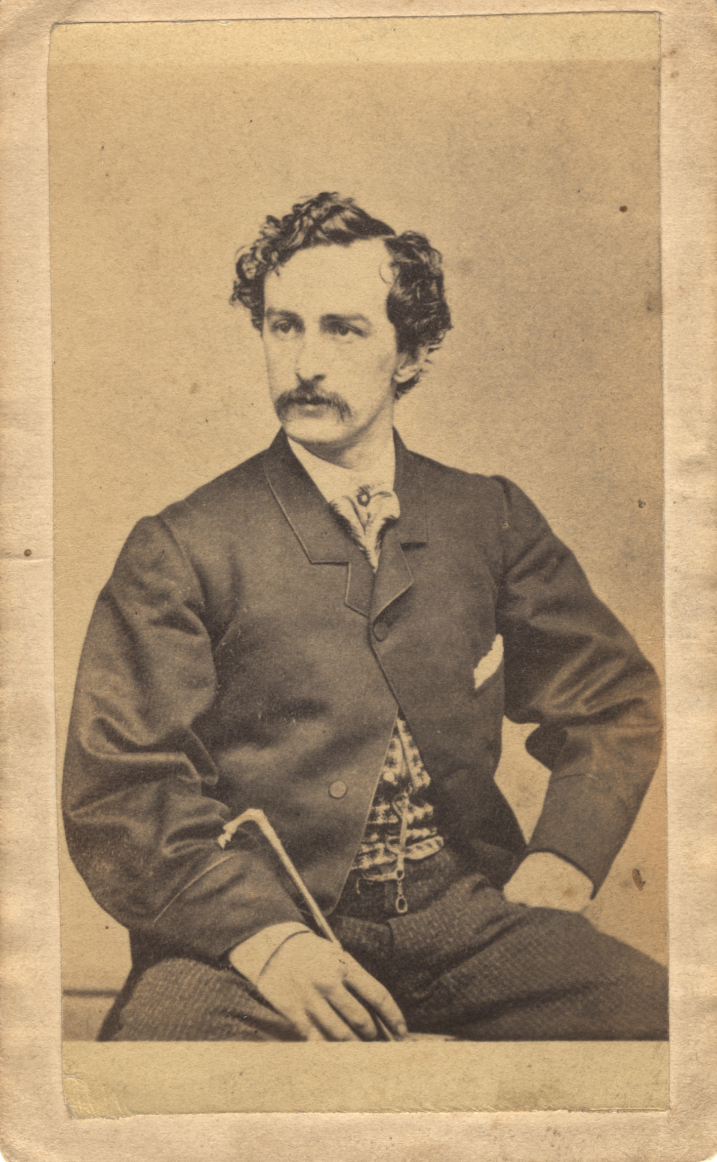 Carte-de-visite of John Wilkes Booth from the United States Civil War period. Actor who assassinated Lincoln. Back of carte-de-visite says "J. Wilkes Booth, Murder of Abraham Lincoln."