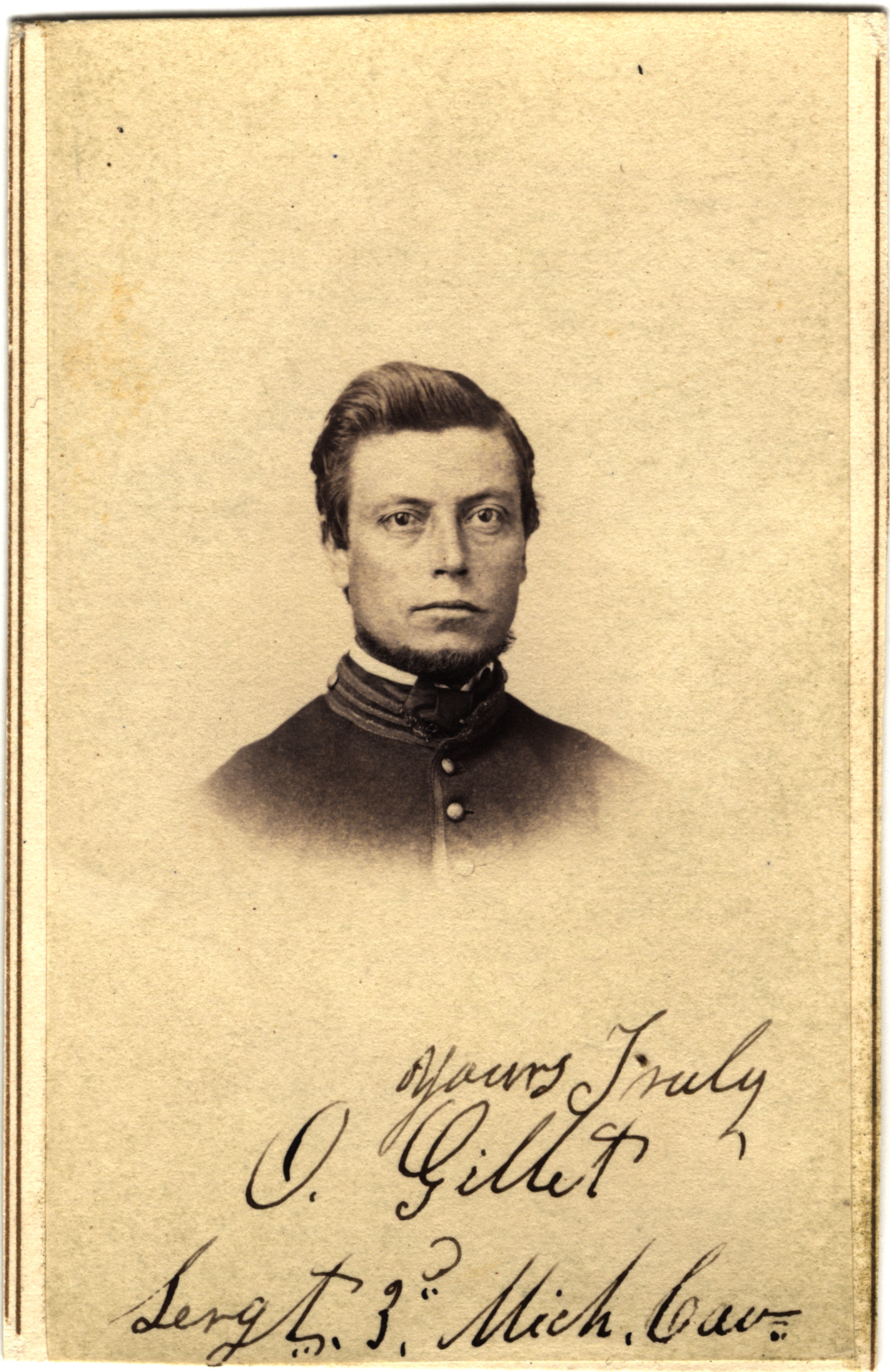 A carte-de-visite print of Orville Gillett, Jr. He was a sergeant in the 3rd Michigan Cavalry.