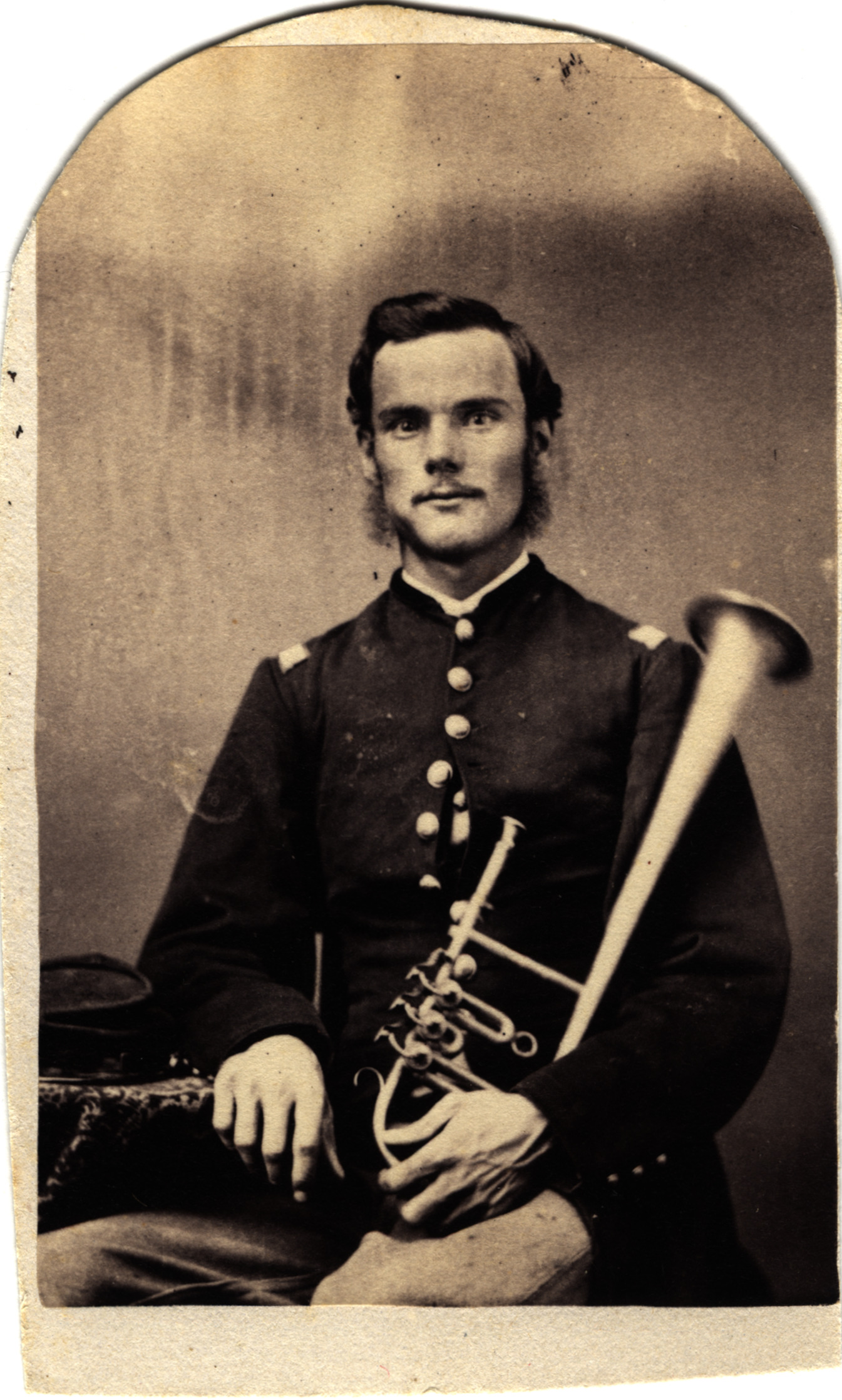 A carte-de-visite print of George R. Horton. He was a sergeant and leader of the 3rd Michigan Cavalry Brass Band.