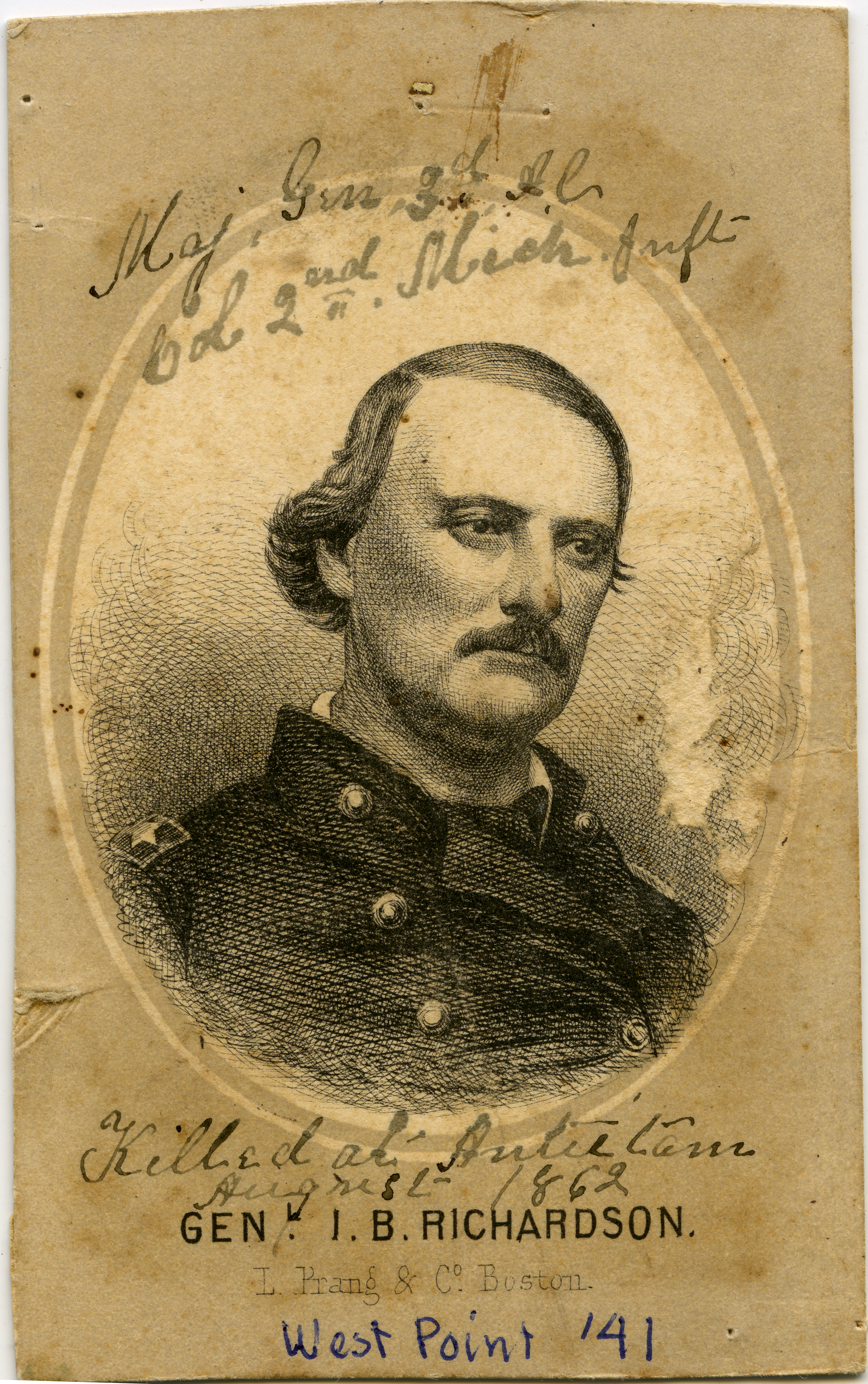 A carte-de-visite sized black and white print of Israel B. Richardson. He was colonel of the 2nd Michigan Infantry Regiment.