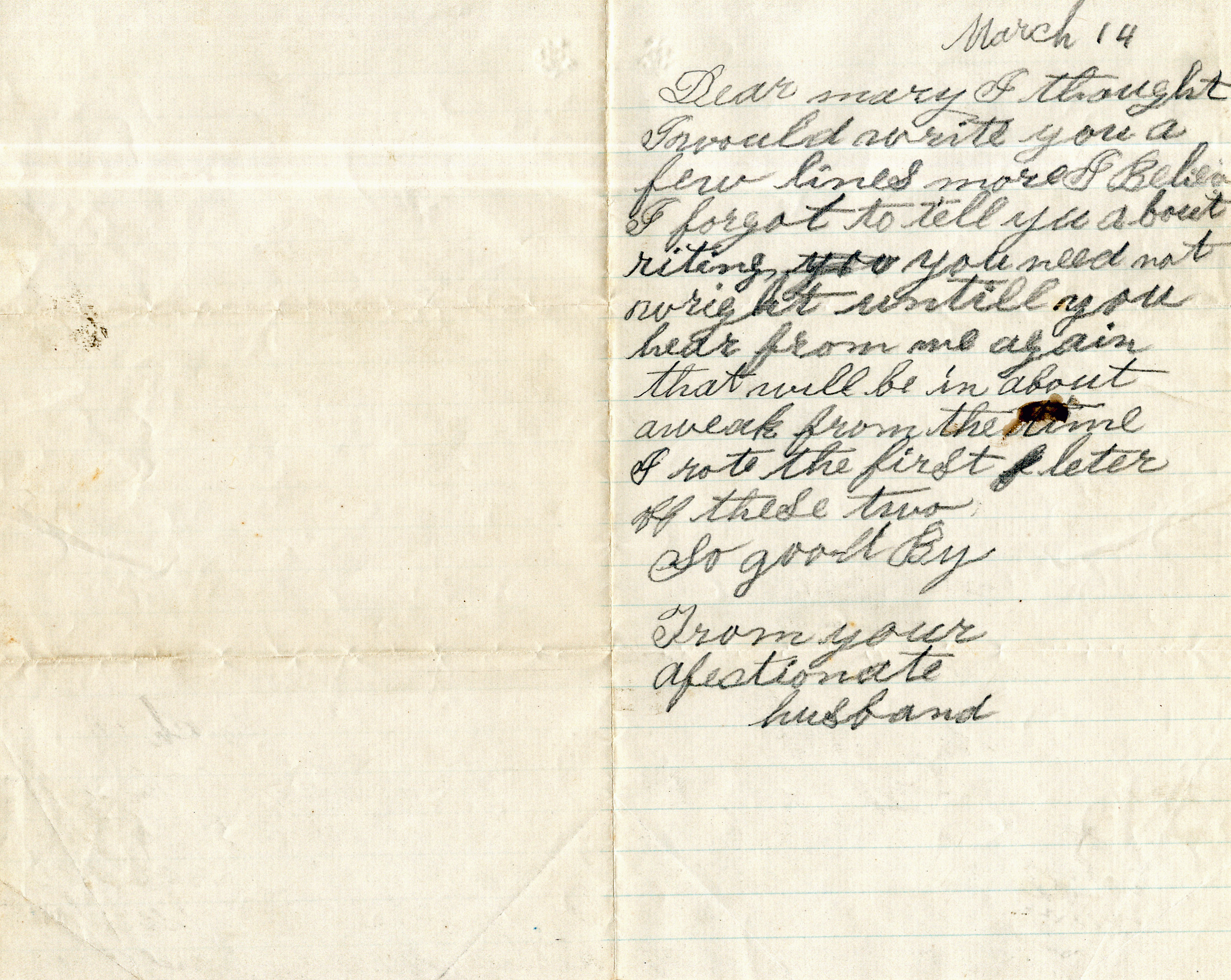 In this letter Peter is telling his wife not to write until she hears back from him. However, he does not give an explanation as to why.
