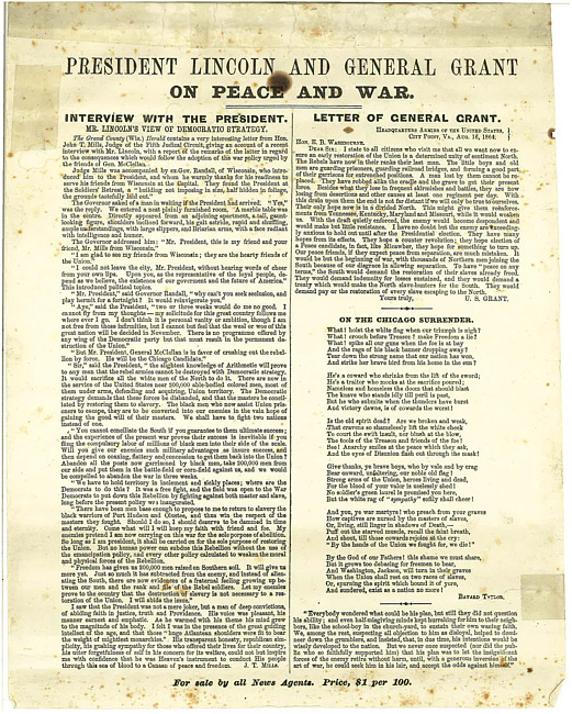 Printed flyer with an Interview with President Lincoln by Judge John T. Mills.