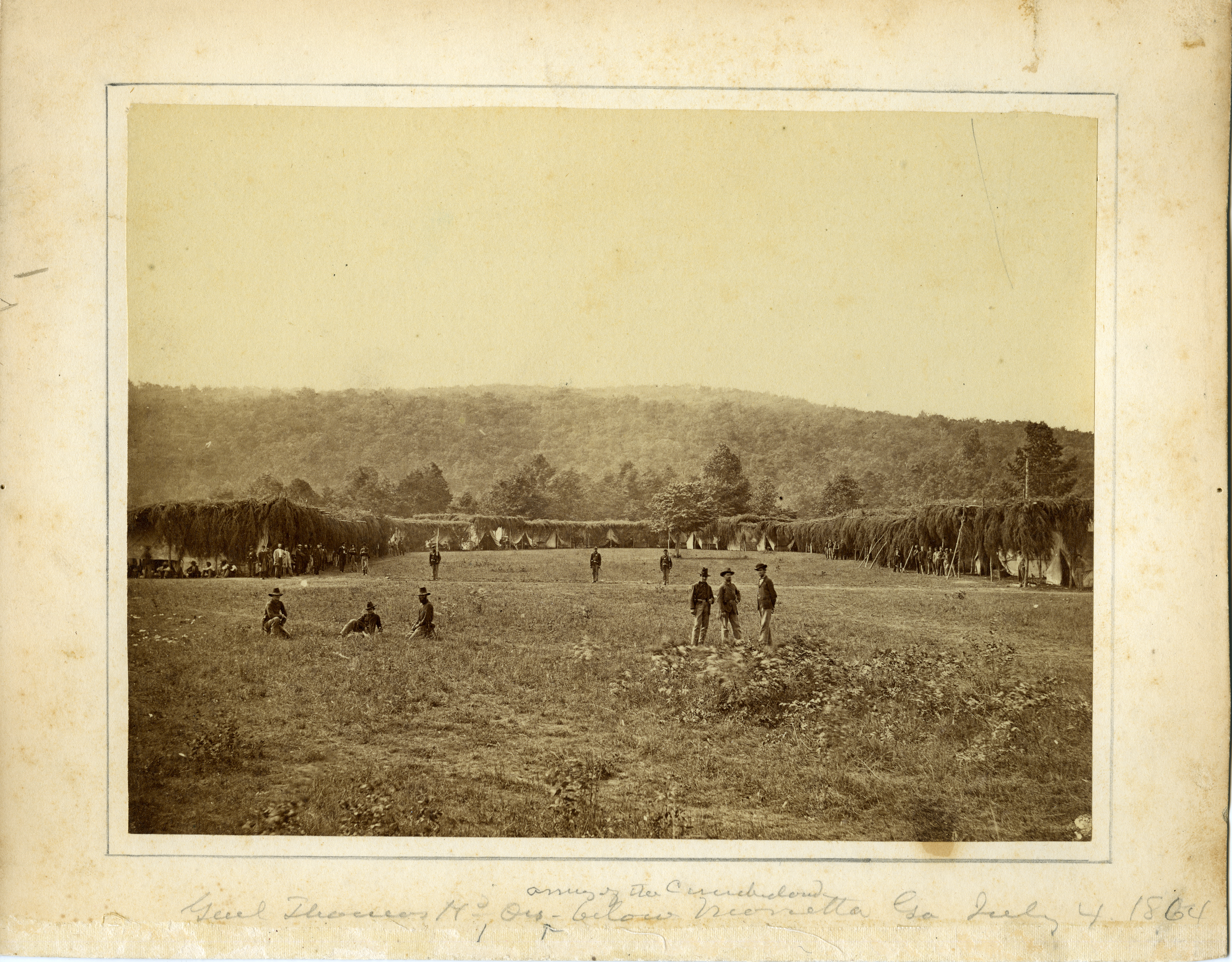 A photograph of General Thomas' headquarters (Army of the Cumberland) below Marietta, Georgia.