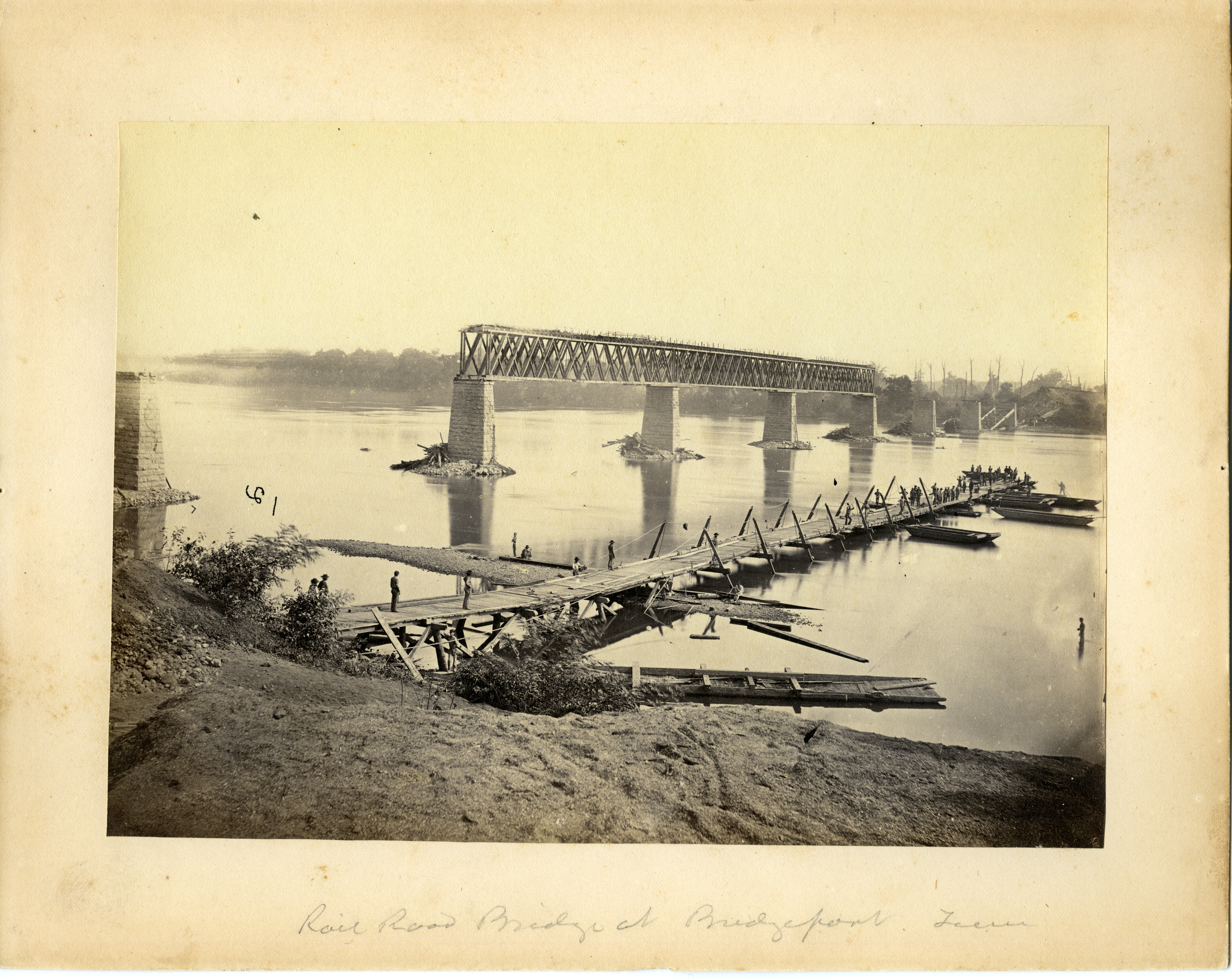 A photograph of a railroad bridge at Bridgeport, Alabama.