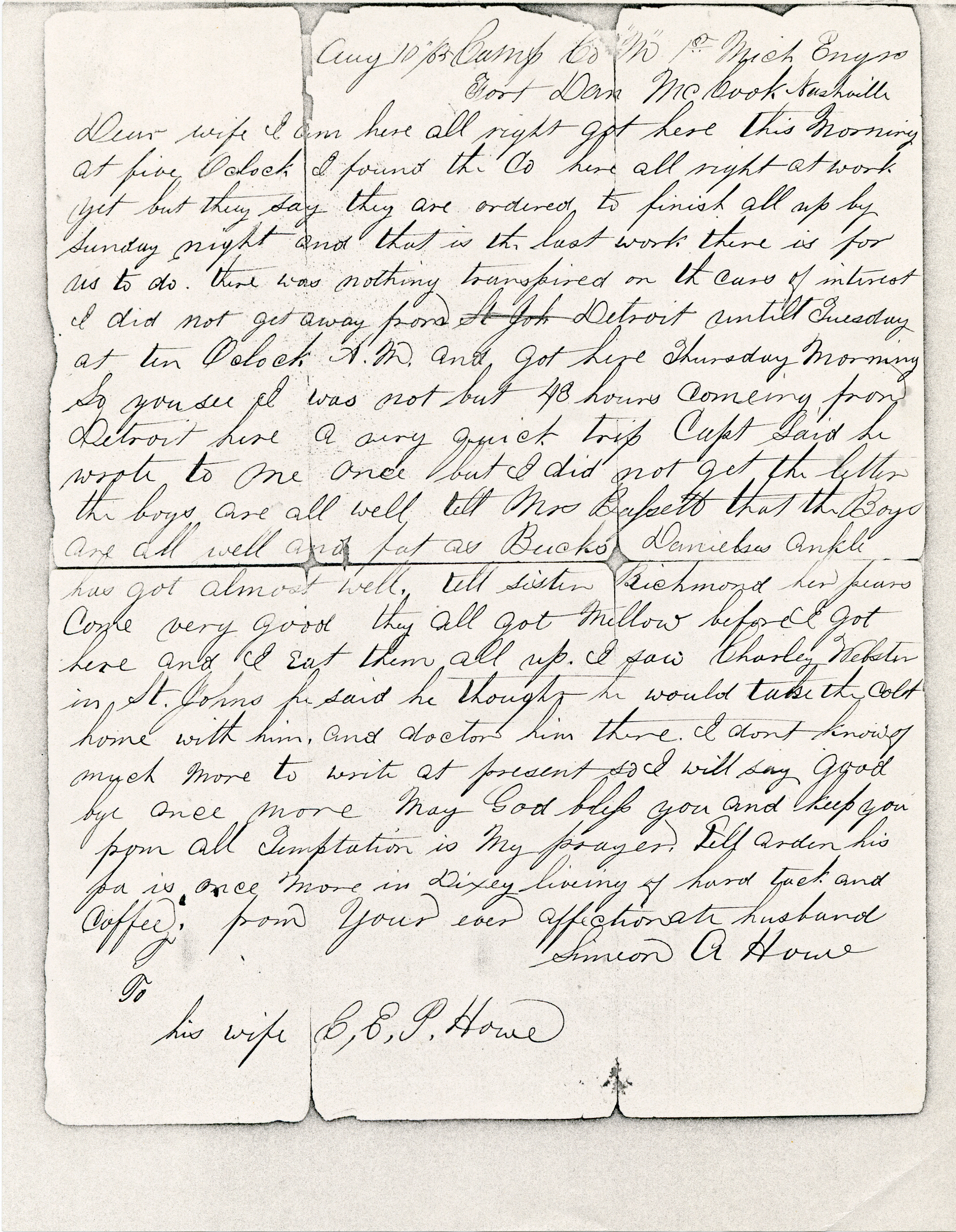 Simeon tells of his travels from Detroit to his post in Nashville. Although not explicitly stated, it seems that Simeon received a furlough to return home after the death of his son Owen.