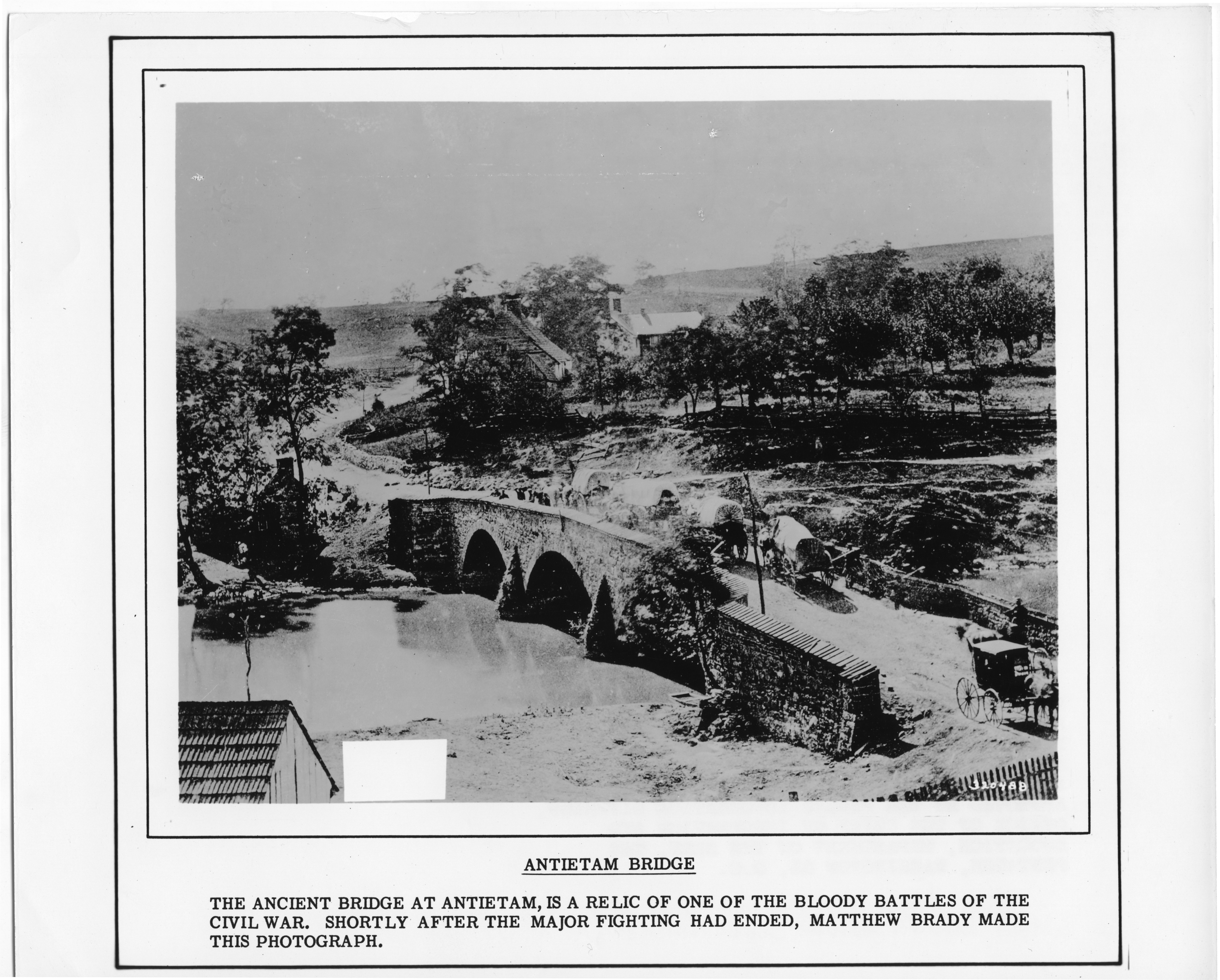 U.S. Army Photograph 320488 Caption: The ancient bridge at Antietam is a relic of one of the bloody battles of the civil war. Shortly after the major fighting had ended, Matthew Brady made this photograph.