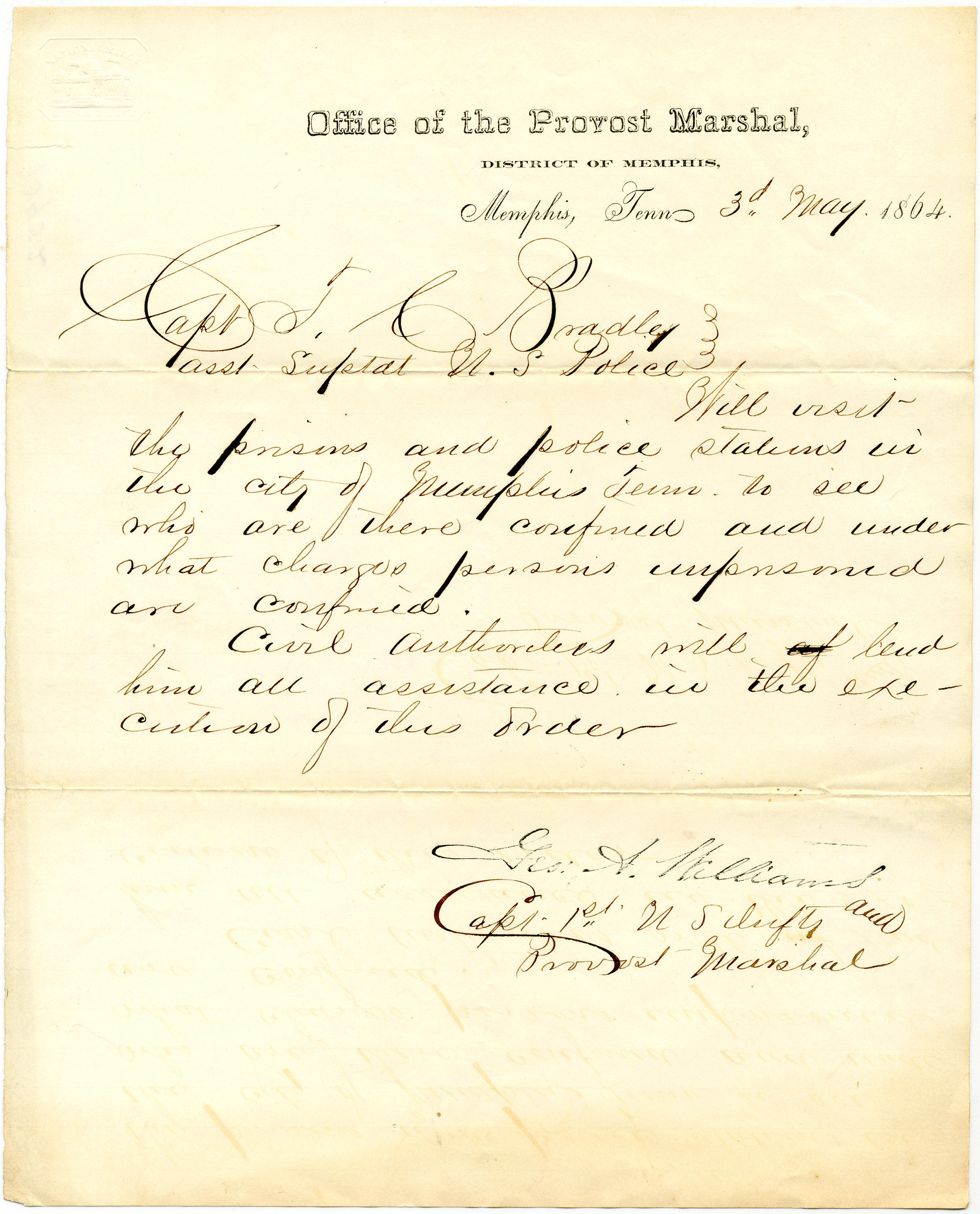 George Williams authorizes Thomas to visit the prisons in Memphis to determine who is imprisoned and why.