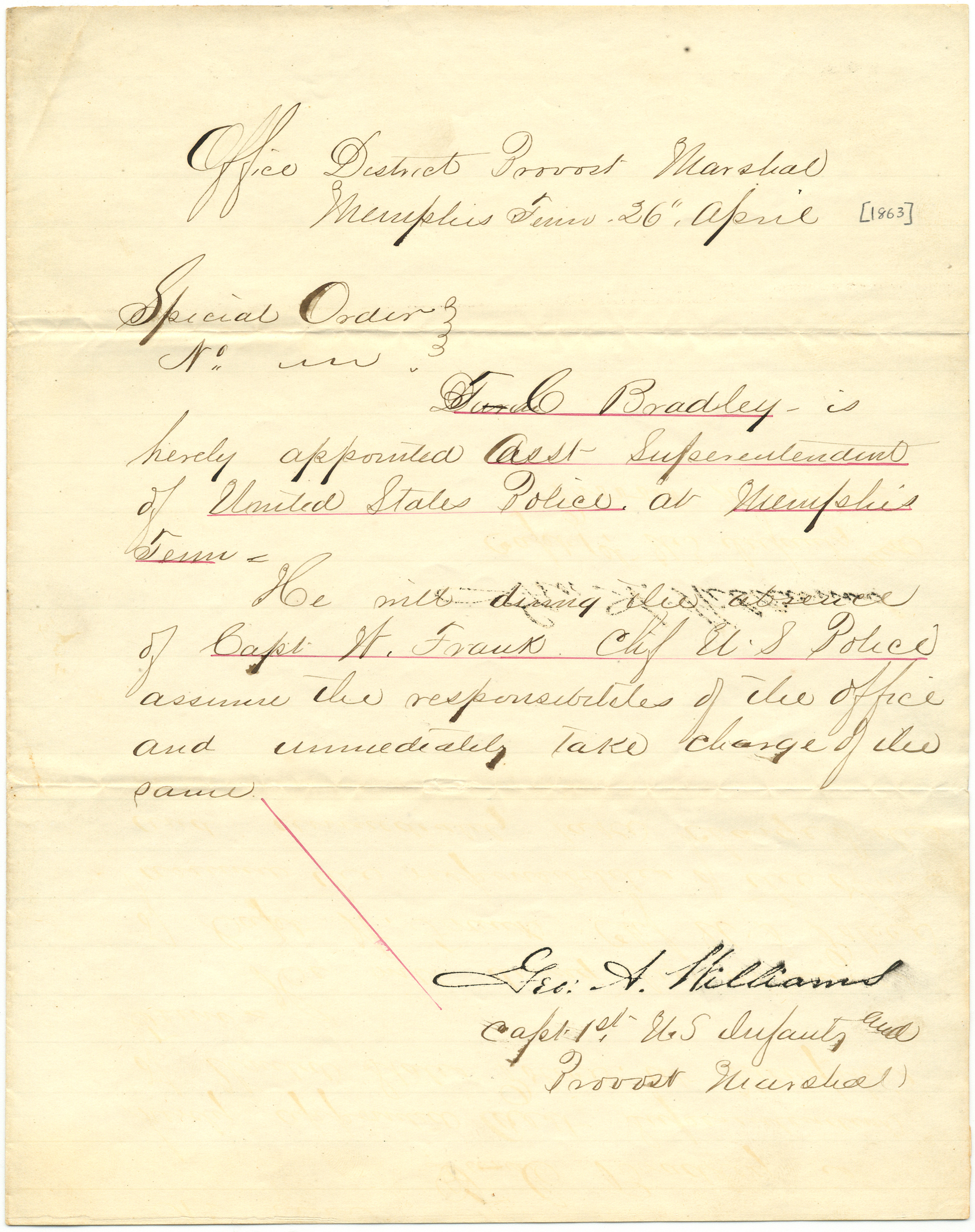 This order appoints Thomas as the Assistant Superintendent of the United States Police of Memphis, Tennessee.