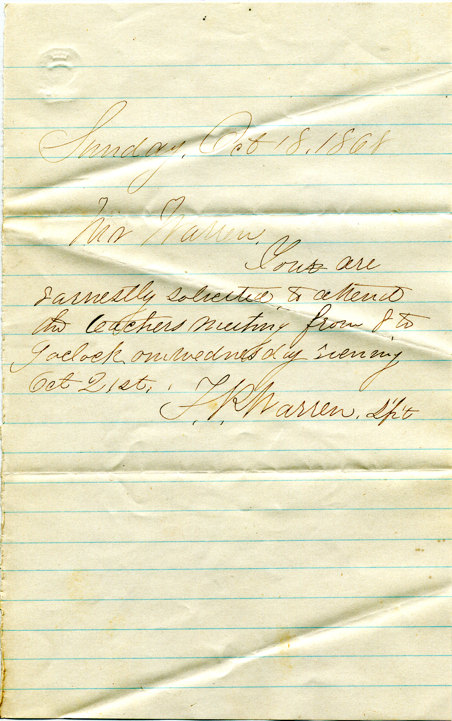 Warren Letter : October 18, 1868
