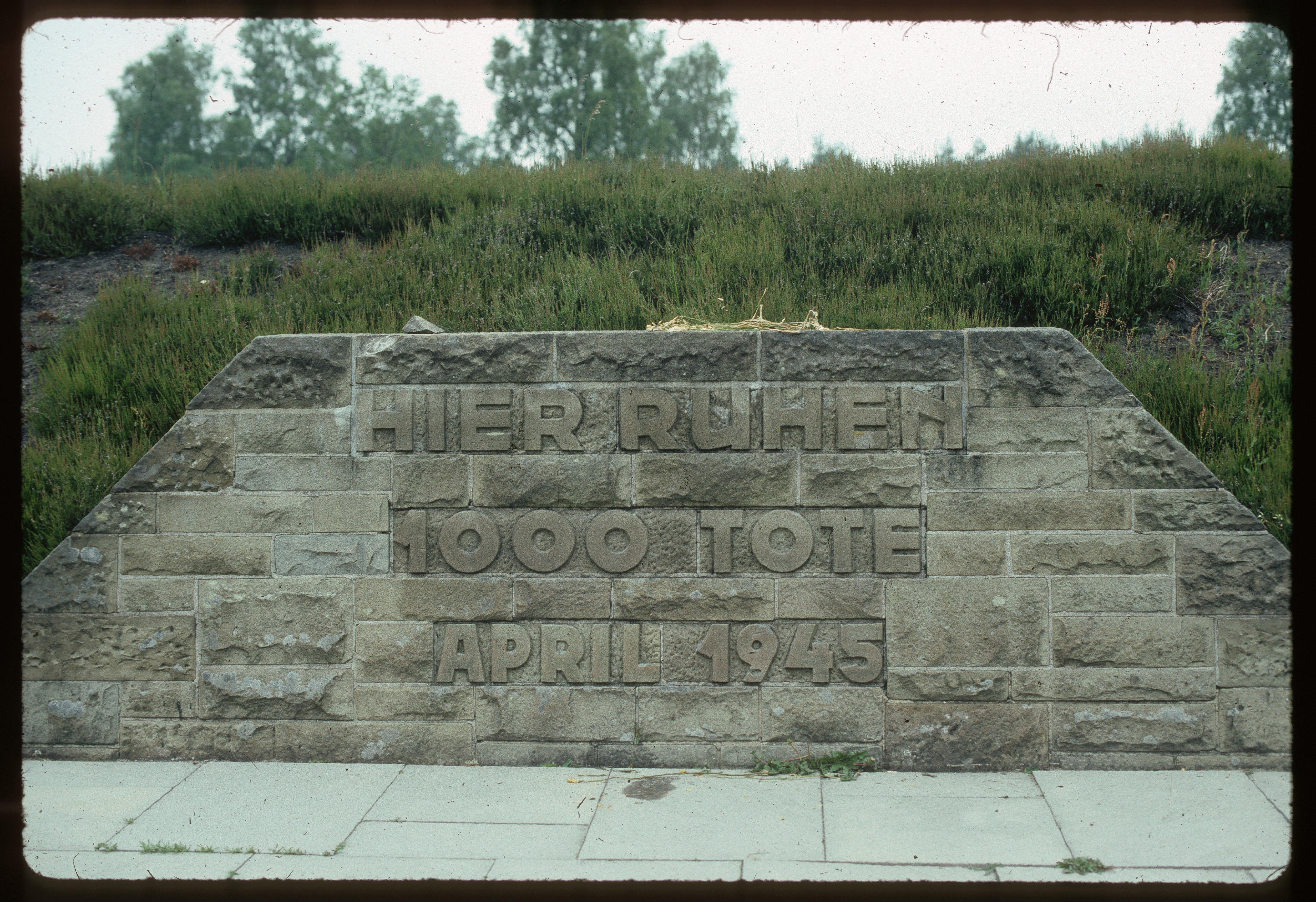 Bergen-Belsen Concentration Camp : Close-up of mass grave stone