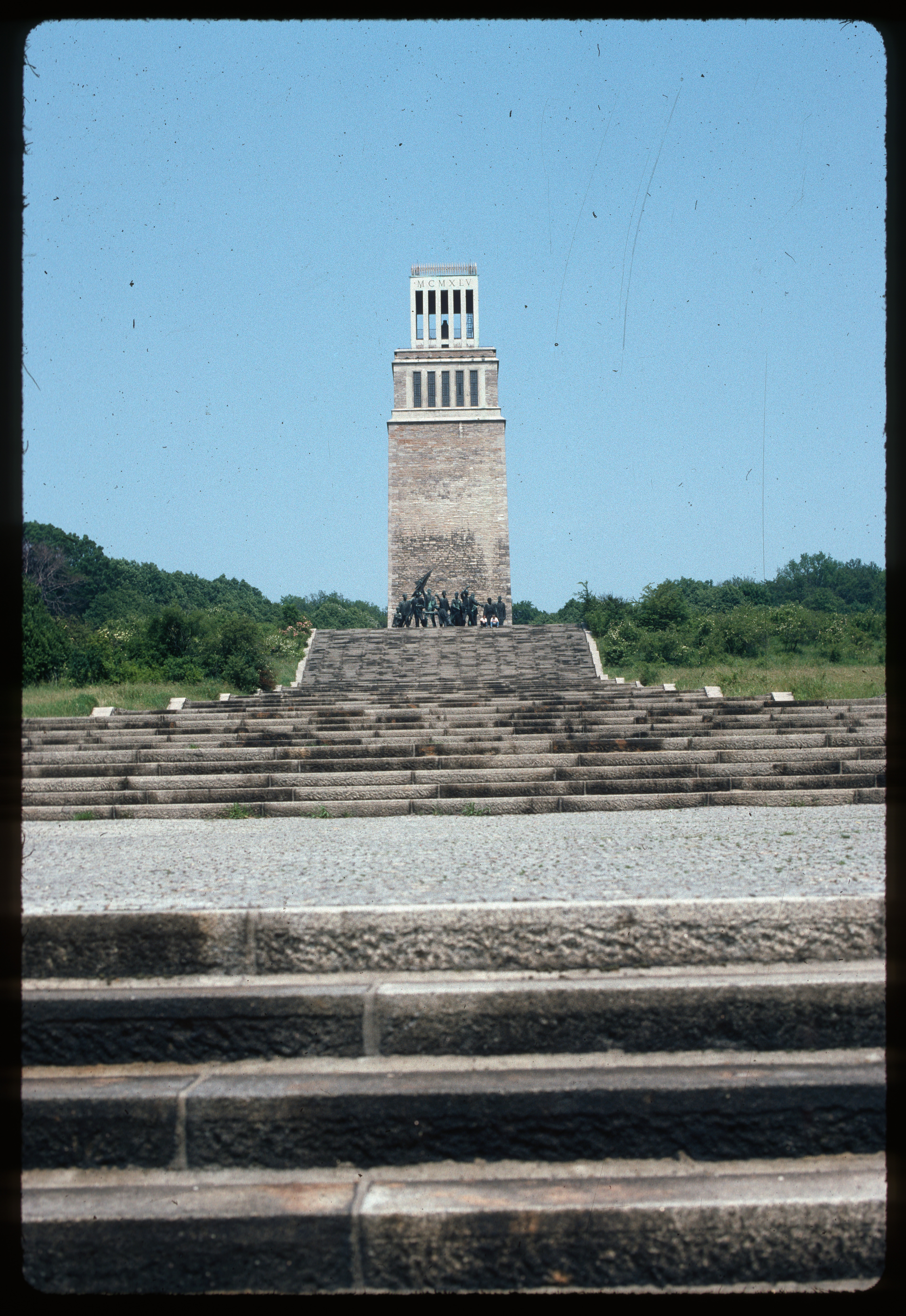 Buchenwald Concentration Camp : View up stairs to Memorial Tower and Memorial Sculpture