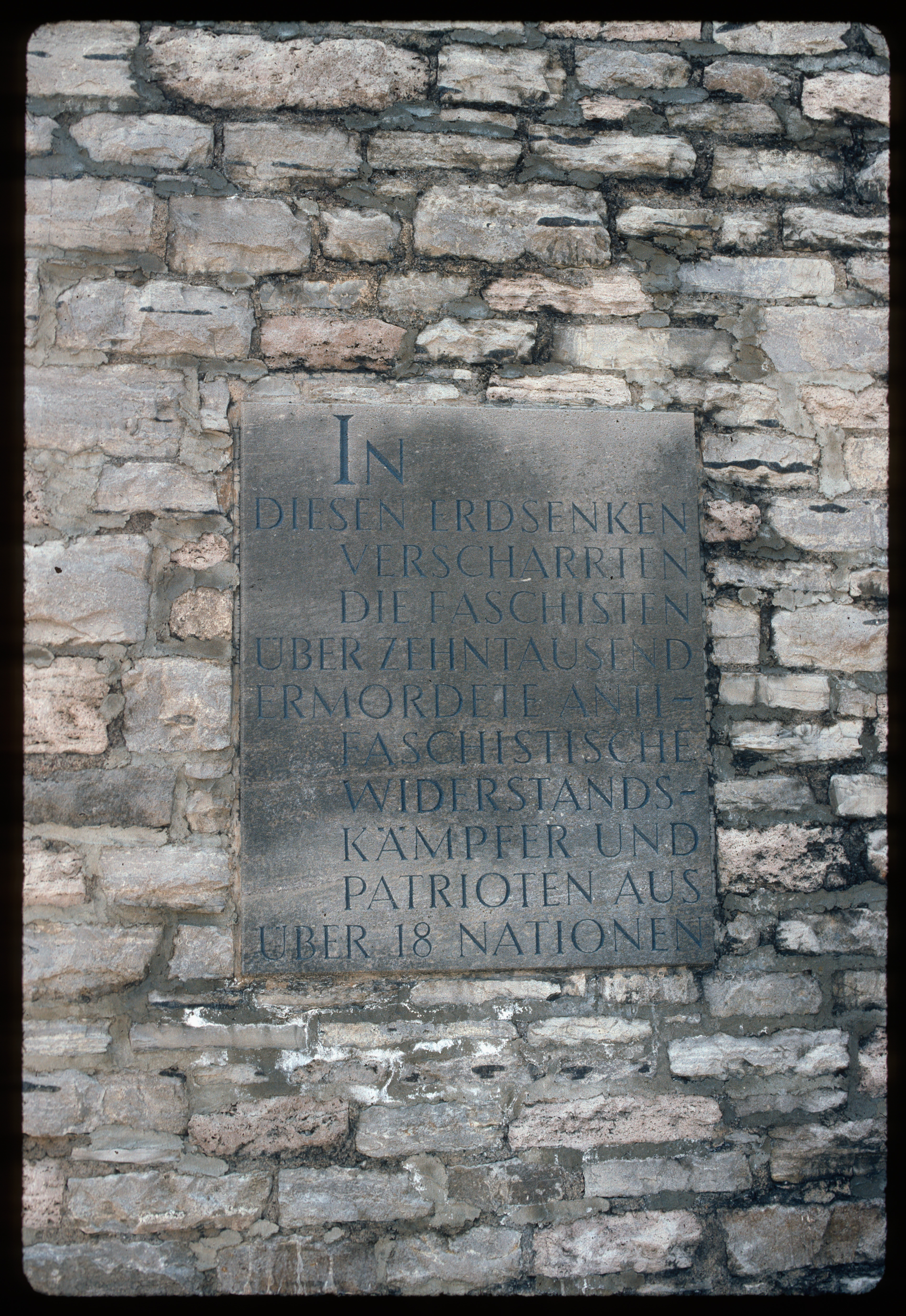Plaque commemorating camp inmates from 18 nations