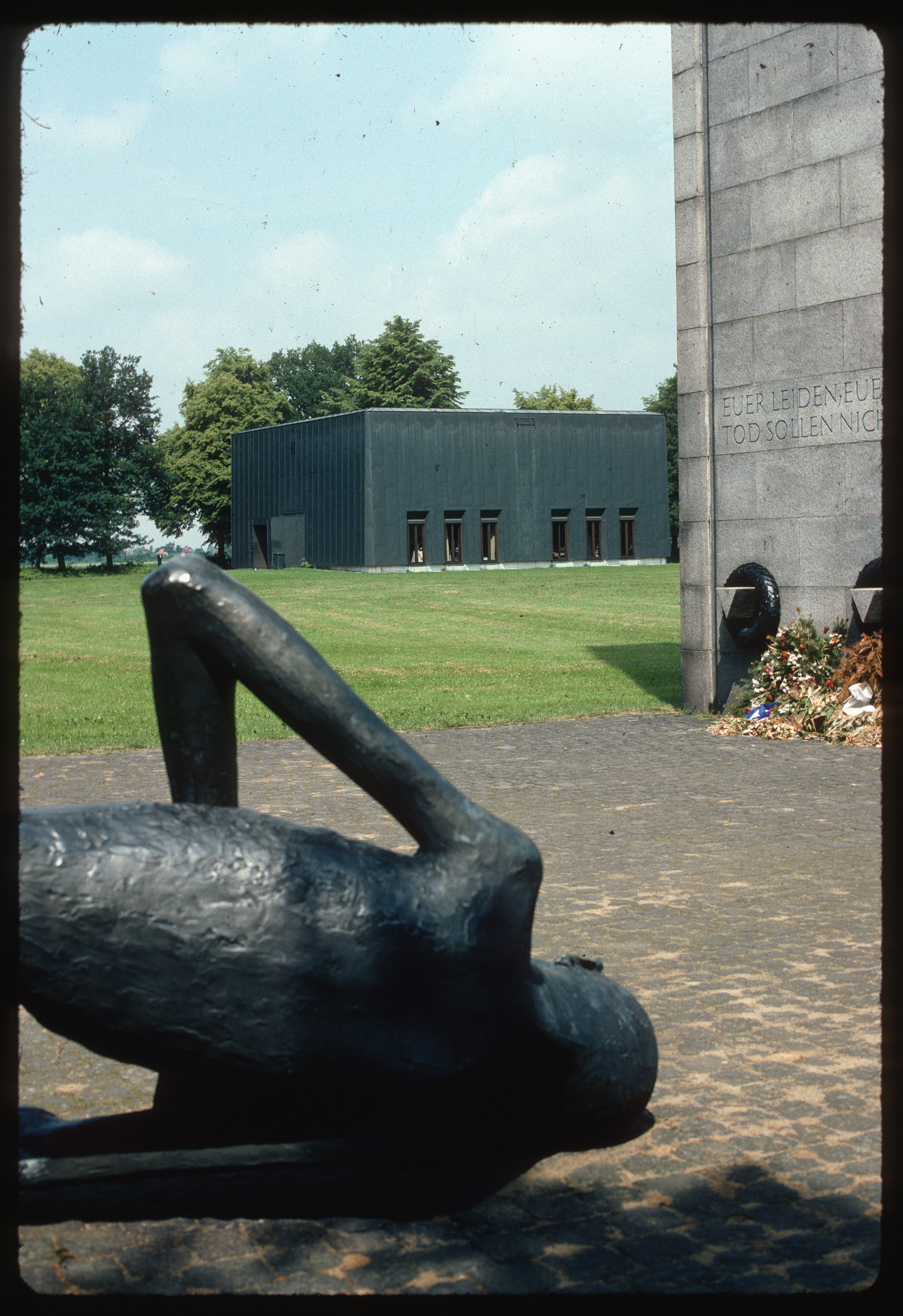 Neuengamme Concentration Camp : Foreground sculpture with camp museum in background