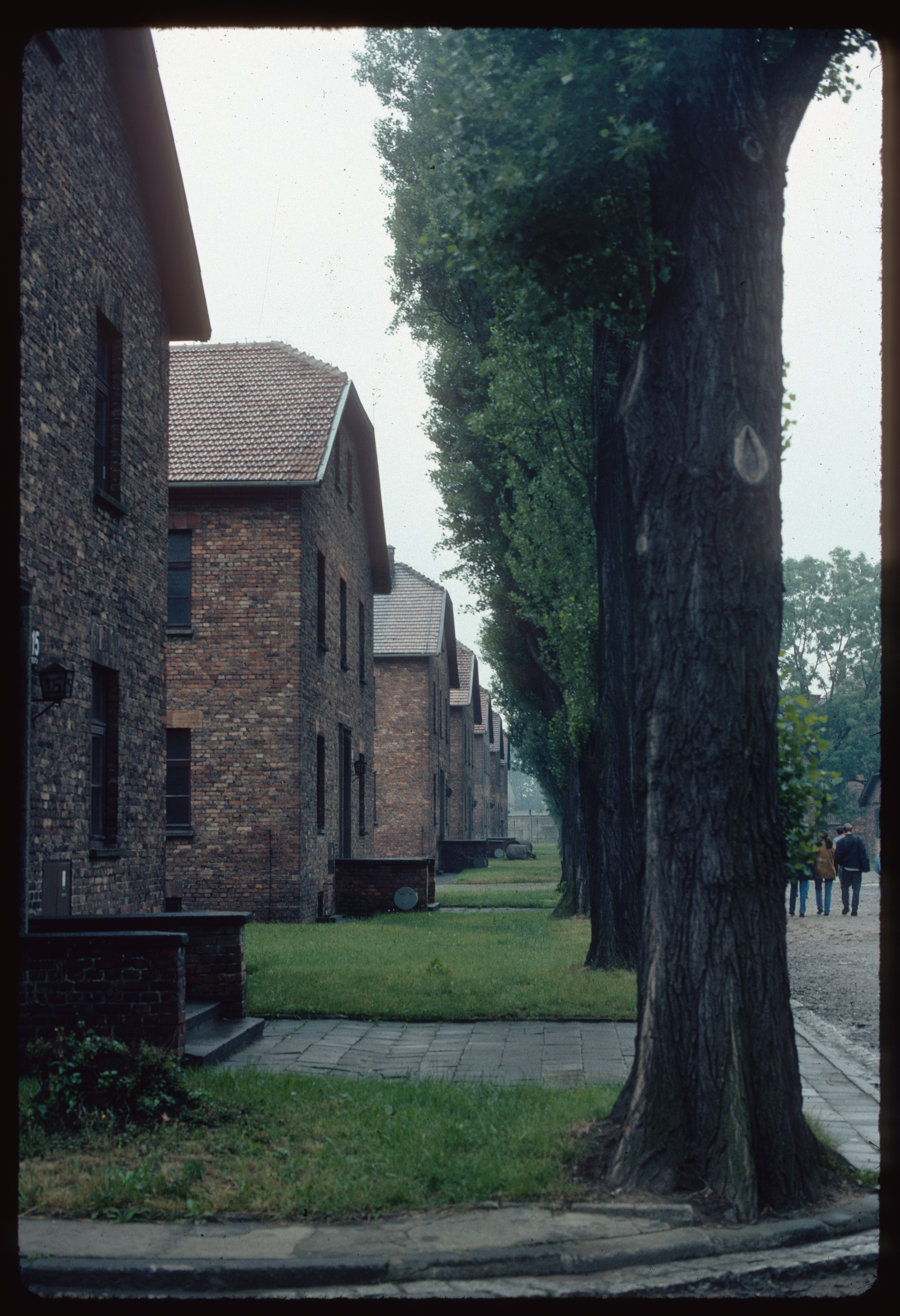 Auschwitz Concentration Camp : Barracks row with main gate to the right