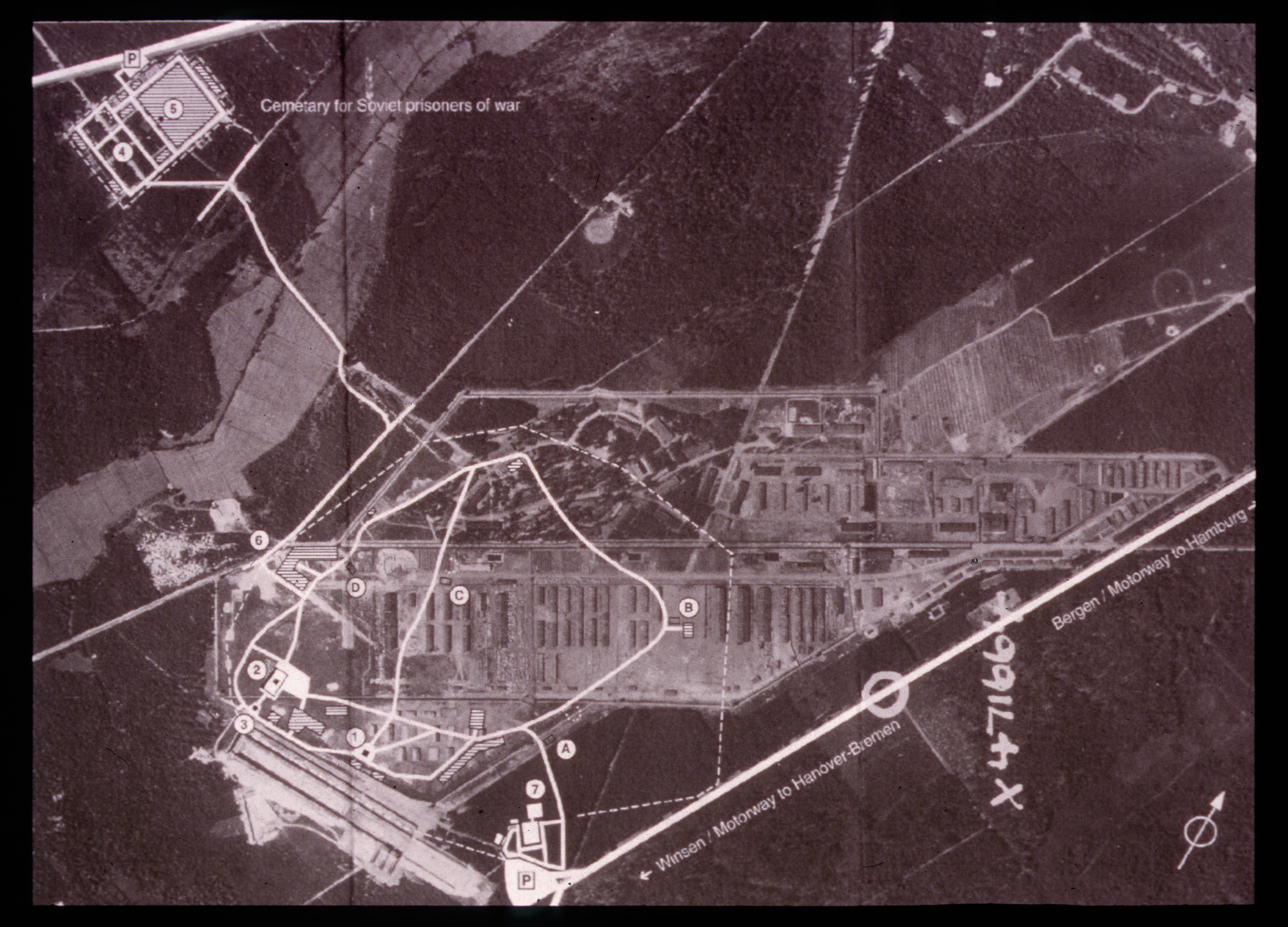 Bergen-Belsen Concentration Camp : Bergen-Belsen camp site as seen on aerial photograph