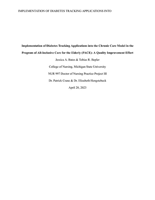 Implementation of diabetes tracking applications into the chronic care model in the Program of All-Inclusive Care for the Elderly (PACE) : a quality improvement effort