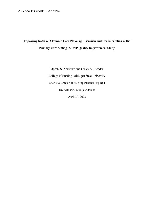 Improving rates of advanced care planning discussion and documentation in the primary care setting : a DNP quality improvement study
