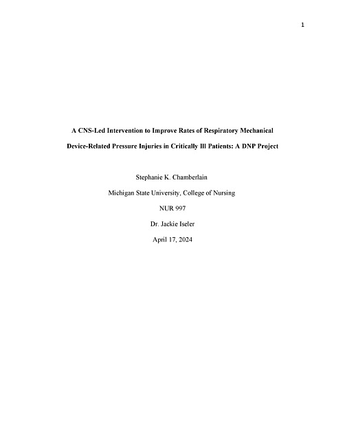 A CNS-led intervention to improve rates of respiratory mechanical device-related pressure injuries in critically ill patients : a DNP project